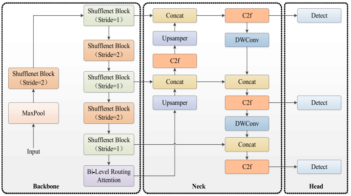 首先,使用轻量级网络 Shufflenetv2 [20] 重建 YOLOv8 的主干;